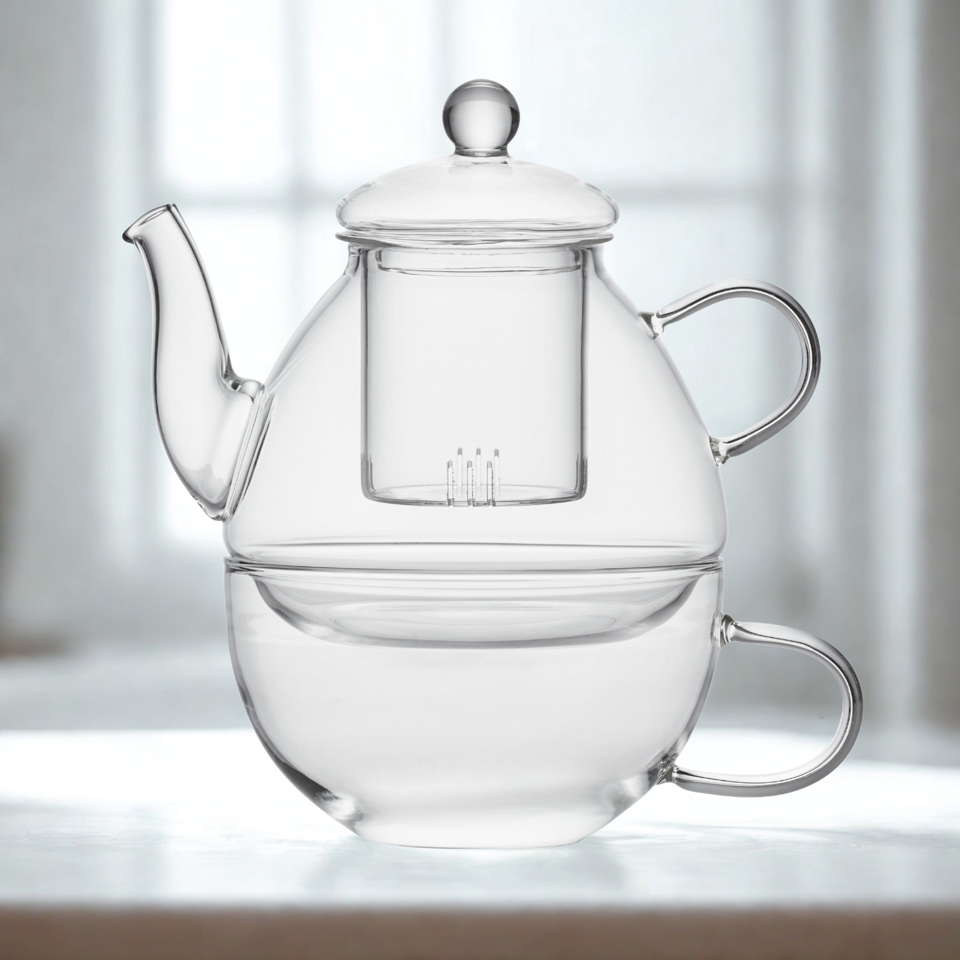 Crafted from heat-resistant borosilicate glass, this elegant set includes a 650ml teapot with integrated infuser and a generous 450ml matching cup. The clear glass design lets you watch your tea leaves unfurl and steep to perfection, turning every brew into a calming ritual.